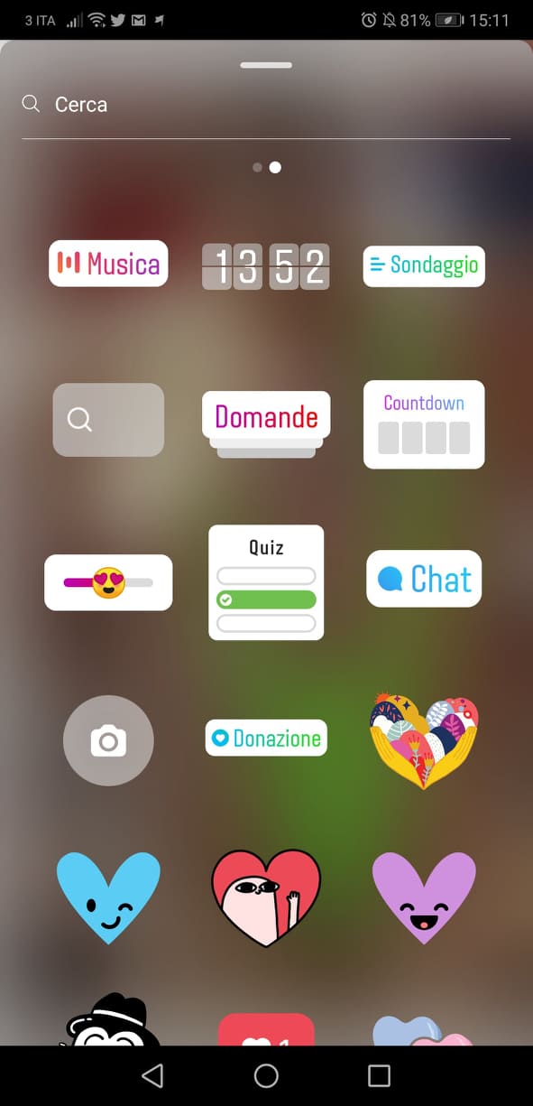 - Inserire uno sticker tramite l’apposita icona e selezionare l’adesivo “Donazioni”