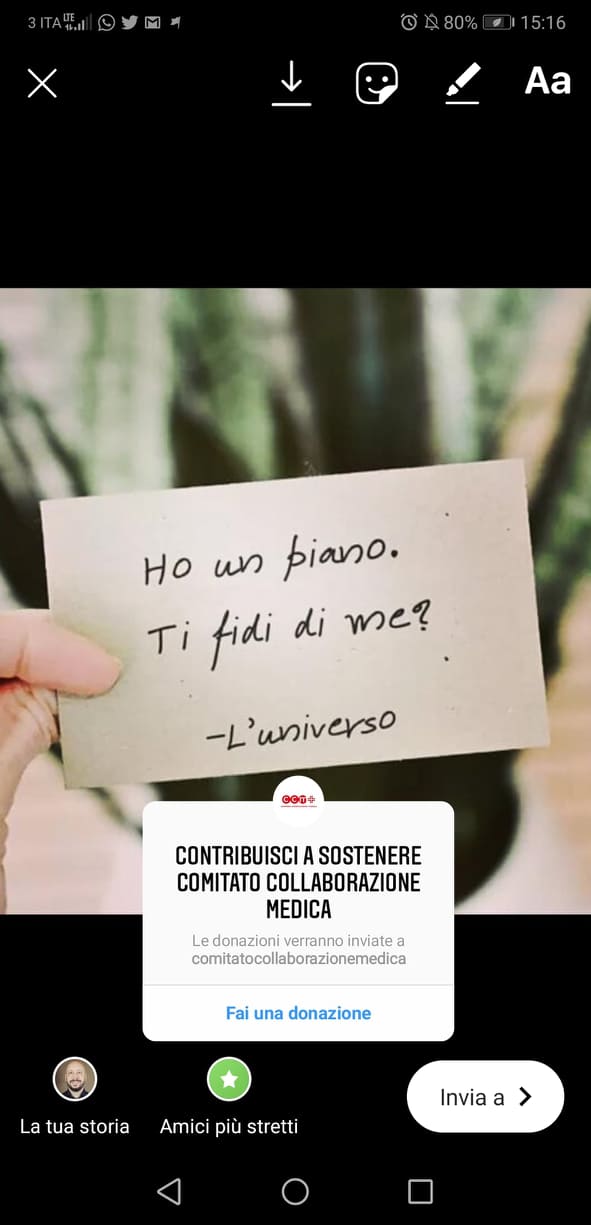 È or ora arrivato anche su Instagram il tasto DONAZIONE per effetturare appunto donazioni attraverso le Stories.